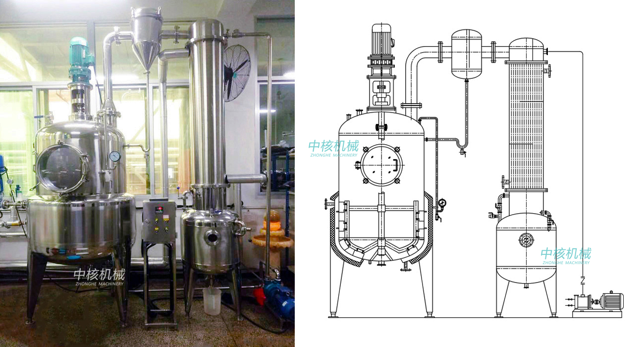 刮板浓缩罐适用于中药、西药、葡萄糖、淀粉、味精、乳品、口服液、化工、食品等液料的浓缩,尤其适用于热敏性物料类的低温真空浓缩。